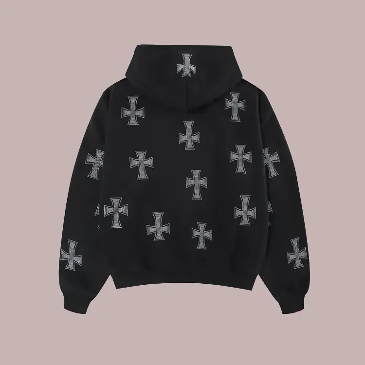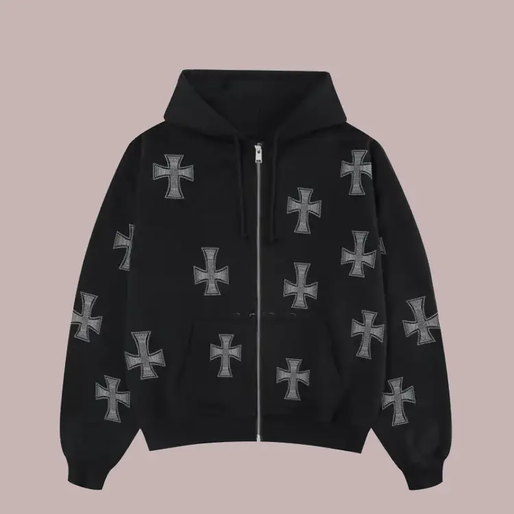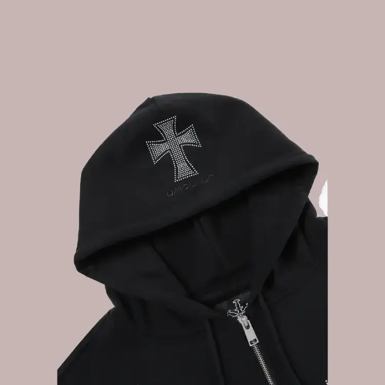 Red Rhinestone Daggers on OVERSIZED Black Zip Hoodie